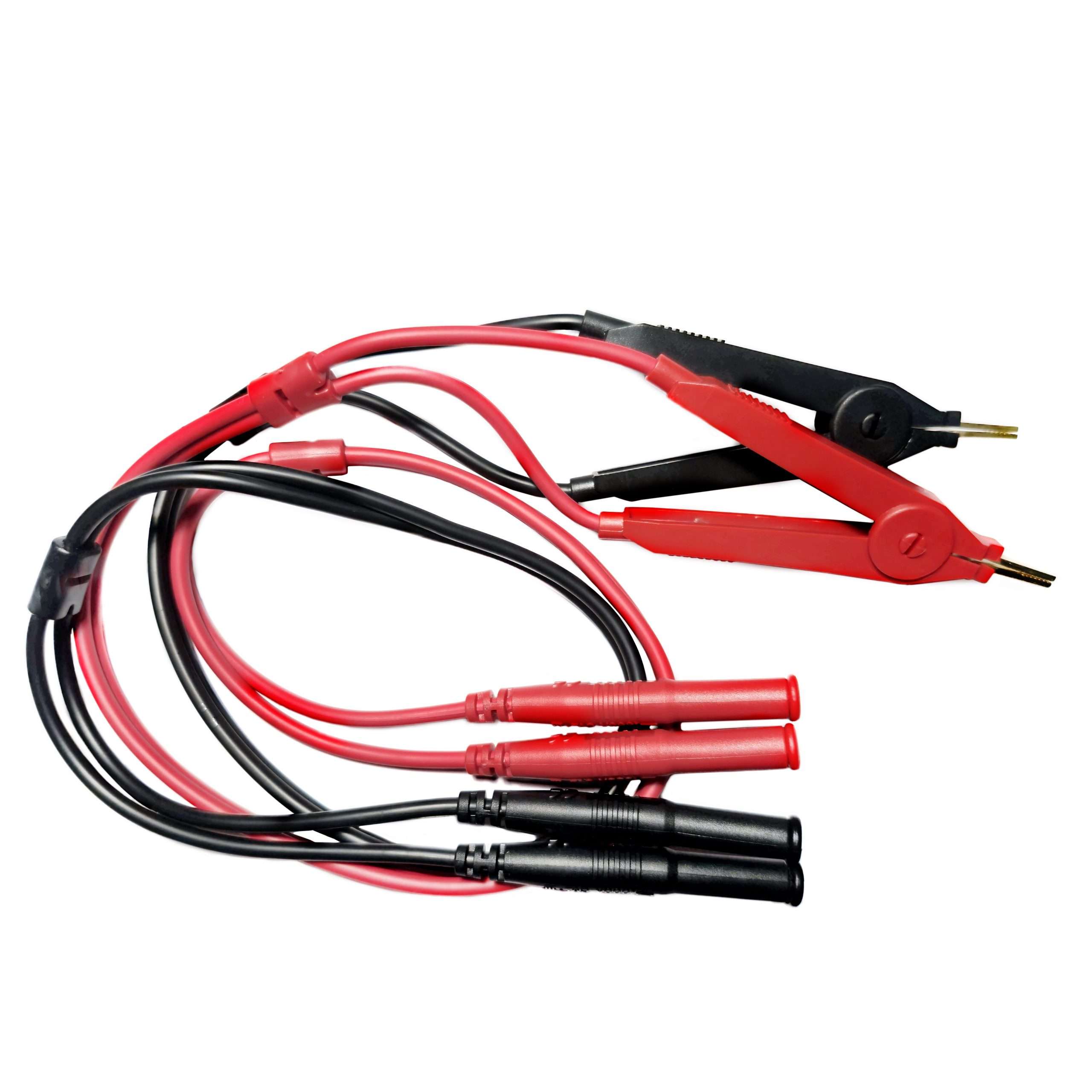 پراب 4 سیم کلوین کلیپس (Kelvin Clips) یا Kelvin Probe/Clip Lead جهت اندازه‌گیری مقاومت‌های خیلی کوچک (milliohm یا microohm) و ECR های پایین در LCR متر ها استفاده میشود.